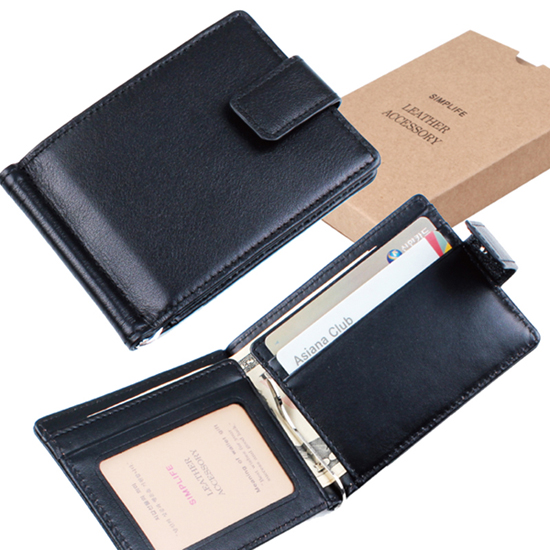 유러피안 지갑형 소가죽 머니클립(블랙)